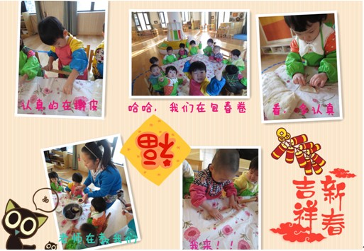 为了能够让孩子们提前感受过年的气氛,各班级老师展开了为期一周的新年活动,学说新年儿歌,学唱新年歌曲,了解新年的来历及习俗,更让小朋友们期待的是制作新年的食物。炸春卷、包饺子。爸爸妈妈们也参与其中,其乐融融。家长们不禁感慨:跟着孩子一起回到了童年。