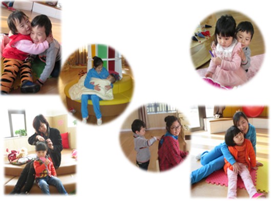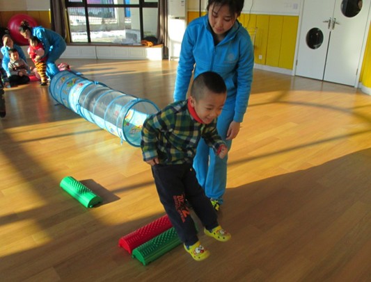 新入园的宝宝刚才还拘谨呢,瞧,现在玩得多开心!