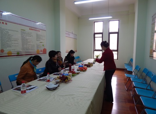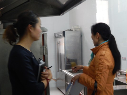 刘老师在认真听取督导组专家关于食品安全卫生的建议