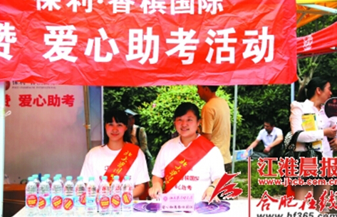 2014年6月14日至17日,紧张忙碌的不仅是中考考生及家长,为考生提供后勤服务的爱心志愿者们也和考生一起感受了一把赶考的心跳。为了给中考考生及考生家长提供更好的服务,北大学园幼儿园合肥恒大华府园成立“爱心助考教师团队”积极参与《江淮晨报》携手政务区保利·香槟国际共同举办的“为梦想点赞”爱心助考活动。在合肥市第八中学、合肥市第五十中学(新校区)及合肥市第五十中学(南校区)分别设立爱心助考加油站做好后勤保障。北大学园幼儿园的爱心之举受到安徽省第一大早报《江淮晨报》的关注和报道。