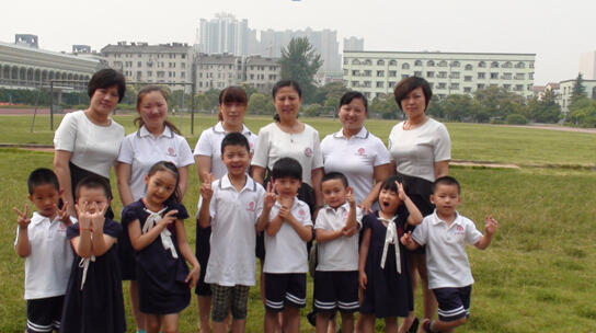 北大学园幼儿园合肥恒大华府园的师生在光华小学操场合影留念