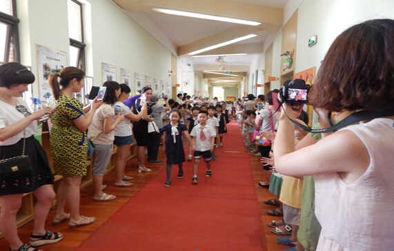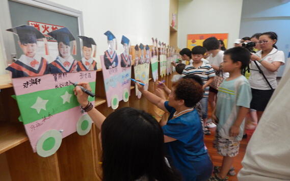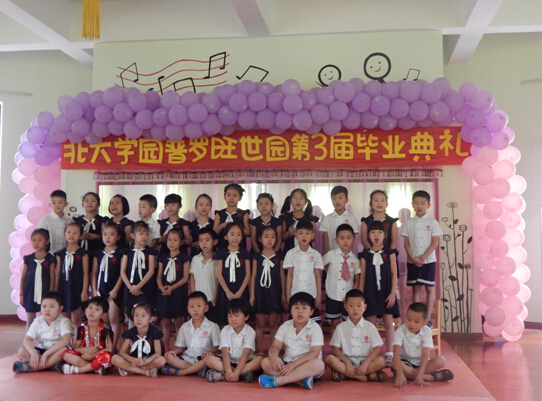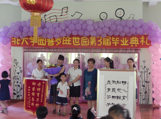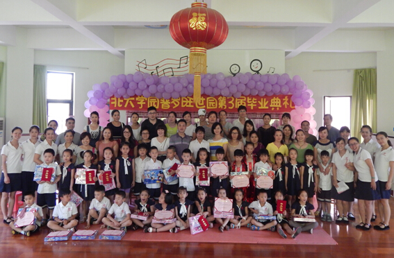 2014年7月15日,北大学园幼儿园郑州普罗旺世园第三届毕业典礼在幼儿园小礼堂成功举办。盛装出席典礼的毕业班家长们站在红地毯的两侧,热烈欢迎毕业班的孩子们闪亮登场。穿着整齐的园服,伴着悠扬的音乐,毕业班孩子们挽着同伴的小手,信心满满走上红地毯,每个孩子的脸上都洋溢着幸福的微笑。孩子们在毕业榜上郑重签上自己的名字,家长们也纷纷送上对孩子美好的祝福。