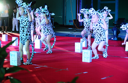 可爱的“小奶牛”们开心地跳着。