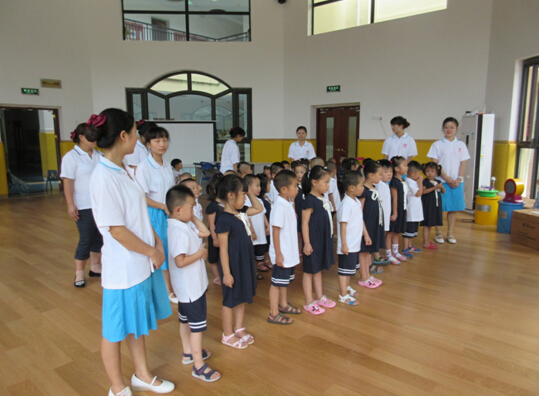 孩子们在老师的指导下排着整齐的队伍做游戏。