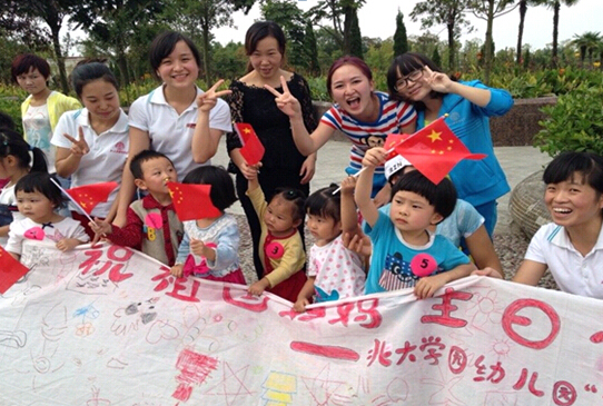 为迎接祖国65周年华诞,培养孩子爱祖国、爱家乡、爱家人的情感,表达对祖国的美好祝福。在国庆节来临的前夕,北大学园幼儿园成都恒大御景半岛园在金山公园成功举办了“喜迎国庆,欢乐家庭日”户外亲子活动。