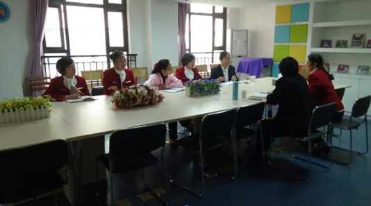保健医邢文茹女士与合肥恒大华府园的领导班子共同研究园所卫生保健工作。